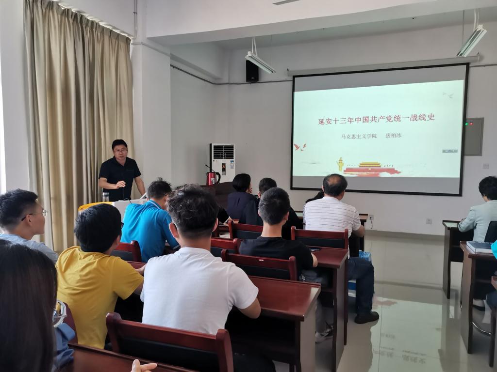 岳柏冰副教授以“延安十三年中国共产党统一战线史”为题,详细解读了延安时期统一战线的发展历程,延安时期统一战线理论的基本内容、上层统一战线策略与国民党高层人士来延安、统一战线与爱国华侨和国际反法西斯统一战线与国际友人五个方面内容。从1935年到1948年,中国共产党在延安一共经历了十三年,在这个时期,中国共产党制定了自己的理论,建立了正确的方针,从弱小走向了强大,为最后带领广大人民取得最后的胜利做好了准备。延安十三年是中国共产党不可或缺的重要历史时期,也是中国社会发展的一个重要时期。延安十三年是党的理论发展和完善的重要时期,是毛泽东思想得以建立的重要时期,通过对延安十三年中国共产党的奋斗历程的认识,感悟到了战争年代老一辈革命者的高尚品格与坚强不屈的意志,体会到了传承不息、内涵丰富的延安精神。