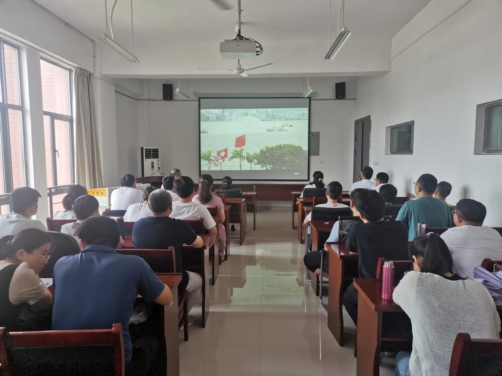 党员教师集中观看了庆祝香港回归祖国25周年大会暨香港特别行政区第六届政府就职典礼,认真学习习近平总书记重要讲话精神,共同领悟“一国两制”在香港实践的丰富经验和深刻启示。曾在香港科技大学做了一年访问学者的光电物理系副教授吴宏伟说到,走过泥泞,方知大道珍贵,经历风雨,更觉阳光美好,习近平总书记的重要讲话站在国家发展和民族复兴的高度,思想深刻、内涵丰富,让人倍感振奋。