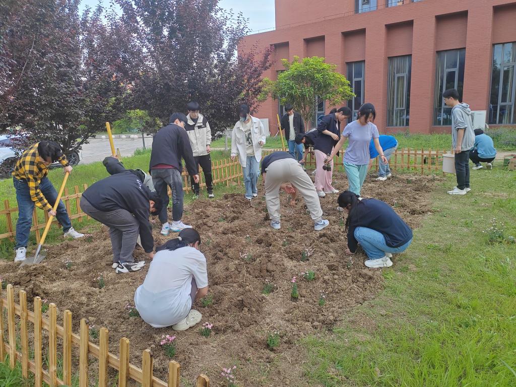 领导、辅导员带领学生通过平整土地、除草、种植、浇水等劳动,教育示范基地已初见成效。目前正在招募不同学科教师成立劳动教育小组,打造一支劳动教育专兼职教师队伍。