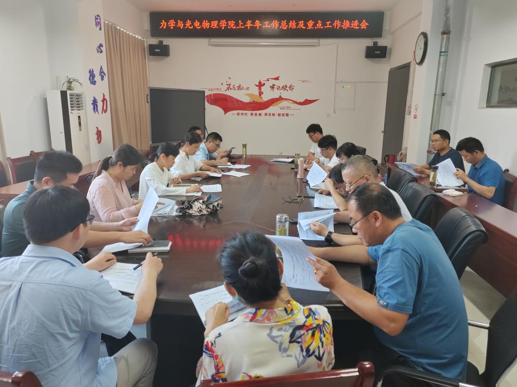 在科研项目上的突破和新引进人才的情况。卢小雨汇报了上半年教学、竞赛等相关工作情况,强调了教学质量的提升和学生在各类竞赛中的优异表现。郑孝莲汇报了上半年学生工作、工会活动及纪检工作相关情况,展示了学生工作的新进展和工会活动的丰富多彩。