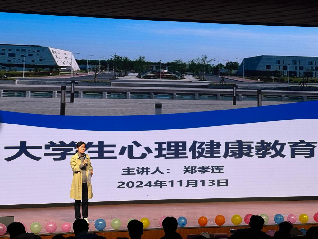 党委副书记郑孝莲进行了大学生心理健康教育讲话,她表示:生活中总有开心的事情,也有烦恼的事情,但总归开心的事情比不开心的事情要多,希望大家都能在大学中感受到青春的色彩,为自己的大学生活留下难忘的回忆。