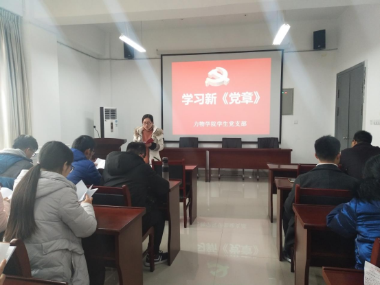 三楼报告厅组织全体学生党员学习新《党章》。活动伊始,冷老师强调了学习新《党章》对于每一位党员的重要性和紧迫性,要求全体学生党员深刻领会党章内涵,将其作为行动的根本指南。随后,通过集中学习研讨的形式,党员们逐章逐节研读新《党章》,对党的性质、宗旨、指导思想、组织原则等核心内容进行了深入剖析与交流。在讨论过程中,学生党员们结合自身的学习、生活和工作实际,踊跃发言,分享学习心得与感悟,纷纷表示要时刻以党章规范自身言行,增强党性修养,发挥先锋模范作用。